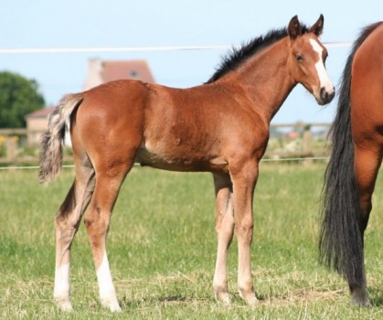 Some new pictures of the colt of Courtisane (Calvin Z x Graf Gotthard Z). The father is Crown Z. In this way, the foal is inbred to Heureka Z: the dam of Zangersheide par excellence. This mare is the mother of e.g. Ratina Z, the mare of the century.